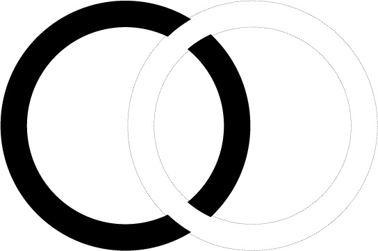 黒の輪っかの上に赤の輪っかが重なっているように見えます。