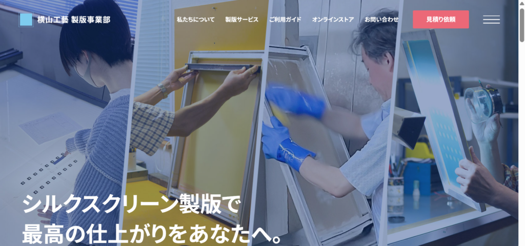 リニューアルは全面的に見直しし、横山工藝シルクスクリーン製版事業部の事業をわかりやすく紹介、見積フォームも項目を見直し、依頼しやすいよう修正いたしました。